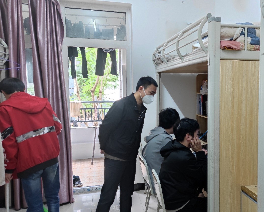 辅导员持续深入员工宿舍,与同学们面对面的亲切交流,全面了解了员工思想动态,及时回应与解决同学们当前遇到的困难,进一步拉进了师生间的距离。