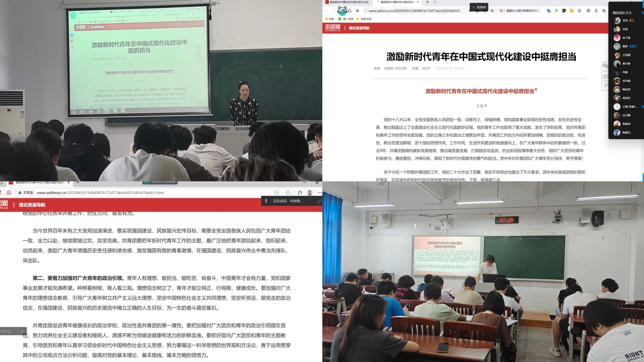 5月18日,机械公司辅导员积极组织各年级员工通过不同方式深入学习习近平总书记重要回信精神和在《求是》杂志发表的《激励新时代青年在中国式现代化建设中挺膺担当》重要文章,引导青年学子深刻领悟习近平总书记对新时代青年的殷切期望,为中国式现代化贡献青春力量。