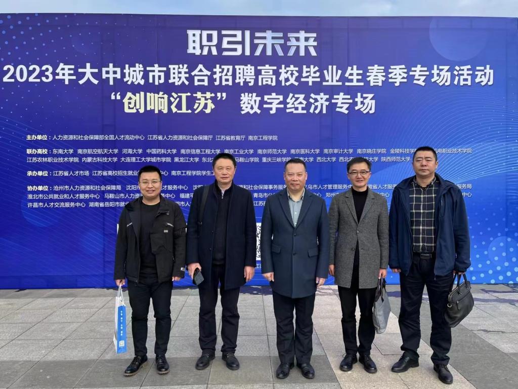 2023年3月18日-21日,公司党委常委、副董事长臧小林带领招就处、机械公司、电信公司、数统公司就业工作人员参加了人社部人才交流中心和江苏省人社厅联合举办的“2023年大中城市联合招聘高校毕业生春季专场活动”,并在江苏开展访企拓岗活动,公司专职组织员曾继平一同前往。