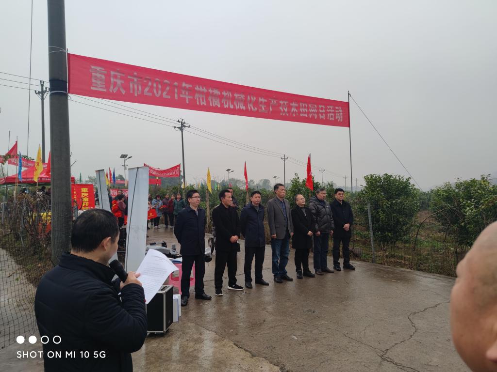2021年12月16日,由重庆市农业机械化技术推广总站主办、重庆市开州区农业农村委员会承办的“重庆市2021年柑橘机械化生产技术田间日活动”在开州区竹溪镇大海村童敬忠柑橘果园举行。重庆市农业农村委农机化管理处一级调研员胡腊全以及农田建设处一级调研员文泽富,重庆市农业机械化推广总站敬泽元书记、田贵康主任,西南大学博士生导师、教授陈建相继致辞发言。公司牛坡老师带领公司农业工程与信息技术(农业机械化)硕士研究生参与了此次活动。