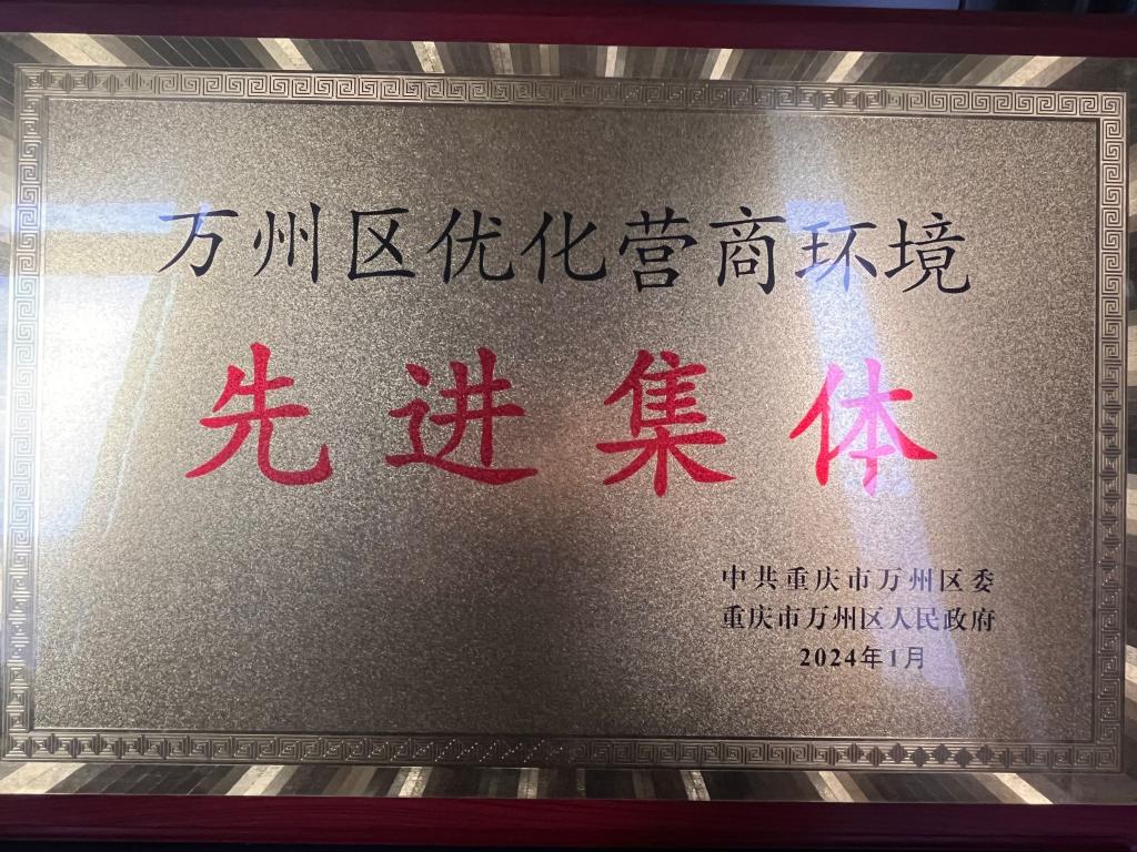 2024年1月,重庆市轻合金材料与加工工程技术研究中心被万州区委、区政府联合授予万州区优化营商环境先进集体荣誉称号。