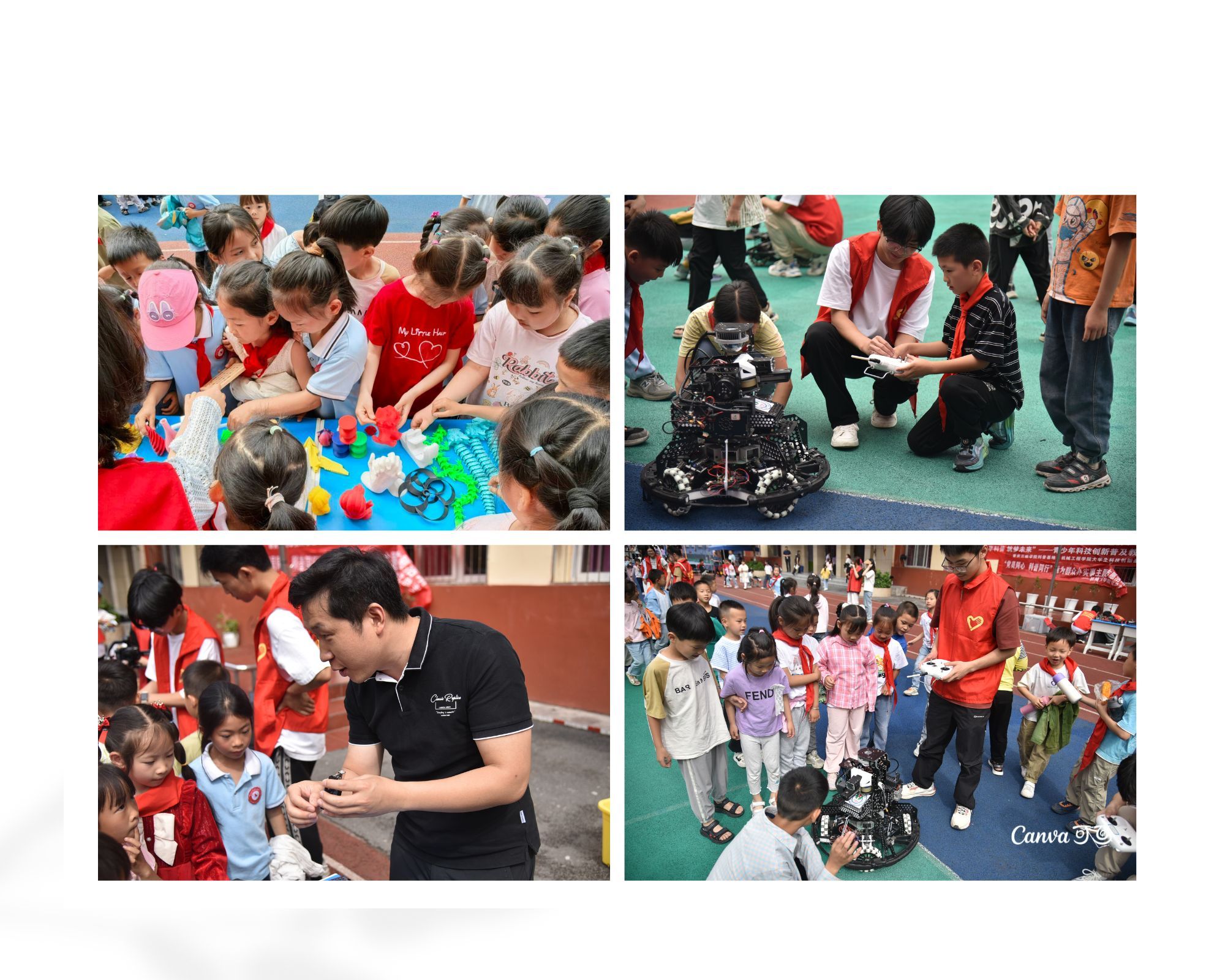 活动内容包括三个主要环节:一是科技知识宣讲,通过生动讲解激发员工科学兴趣;二是科技作品展示区,重点展出3D打印模型等创新成果;三是互动体验区,设置机甲机器人操控、飞行器原理演示等实践项目。活动现场互动频繁、气氛热烈,为分水小学1200余名师生带来了一场别开生面的“科技盛宴”。