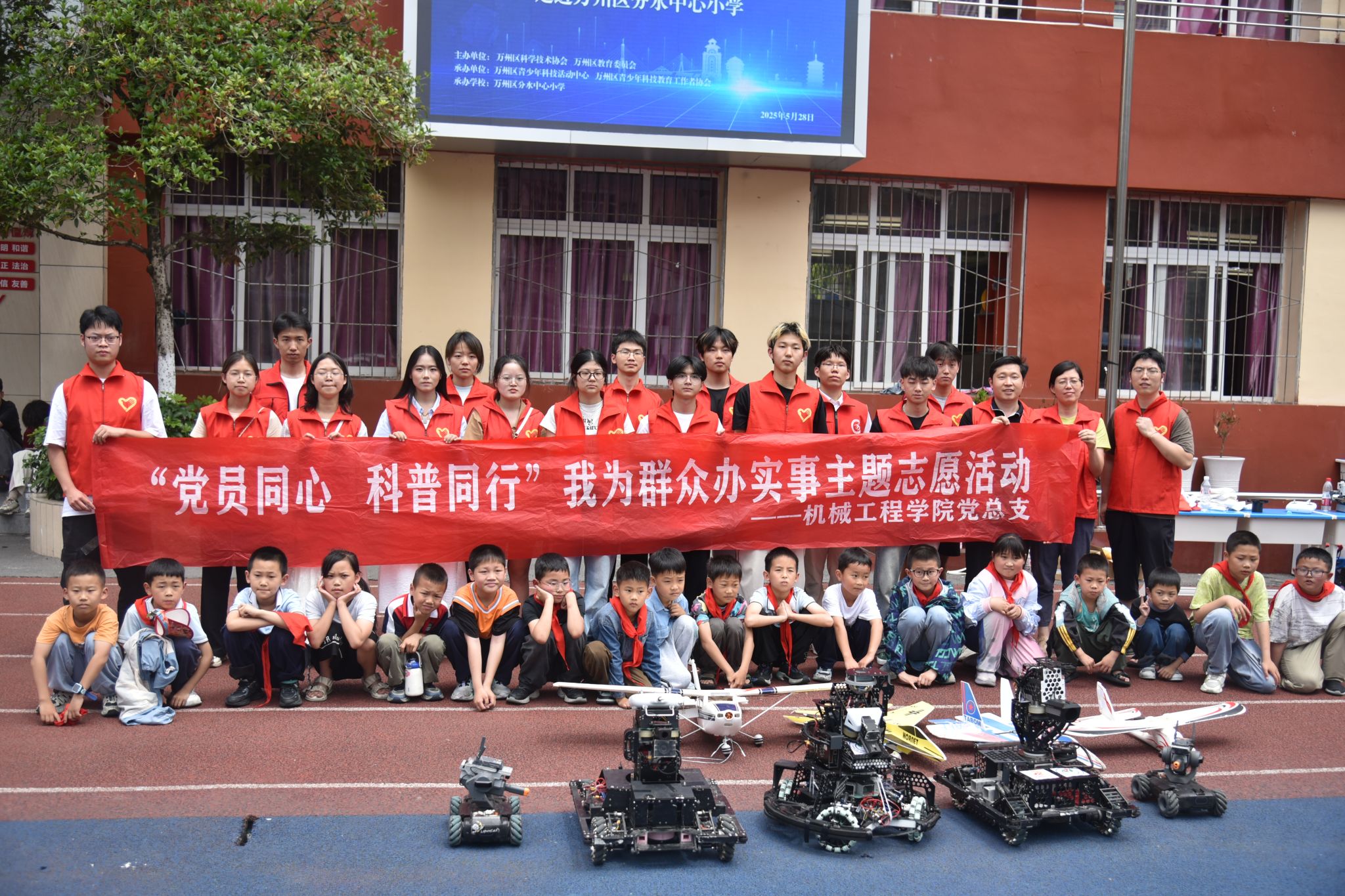 2025年5月28日上午,在第九个全国科技工作者日来临之际,2026世界杯官网党总支科普教育志愿服务队,联合万州区科学技术协会、万州区教育委员会,走进了万州区分水中心小学,开展以“乐享科普,筑梦未来”为主题的青少年科学普及志愿服务活动。