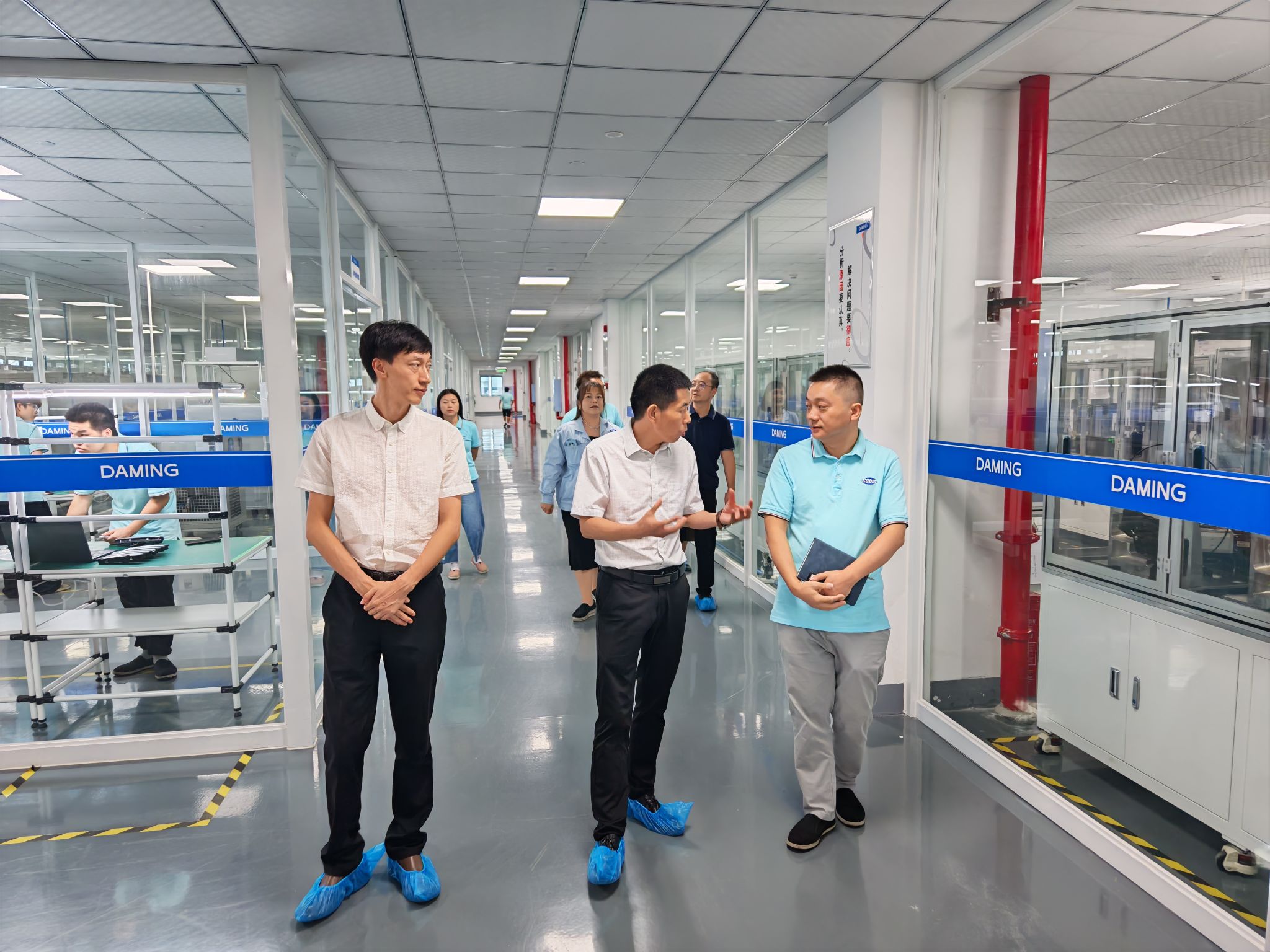 尹立孟副董事长一行首先参观了大明电子的生产车间。企业车间负责人详细介绍了公司的核心产品线、智能化生产流程及技术研发方向,现场展示了自动化生产线、精密检测设备等先进设施,使大家直观感受到电子制造行业的前沿技术现状与岗位需求。